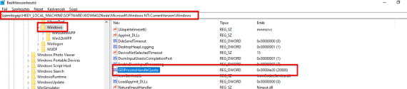Indítsuk el a Windows-ban a Regedit.exe programot (Beállításszerkesztő), majd a megjelenő ablakban keressük meg az alábbi kulcsot és módosítsuk az értékét.